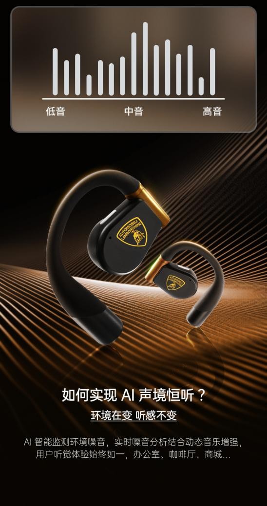 In addition to its strong performance in design and sound quality, the Cleer ARC 3 Lamborghini co branded model also leads the industry in intelligent functions. It is equipped with a new generation of high-performance AI chips, realizing six core AI functions including AI voice control, AI two-way high-definition calling, AI sound environment constant listening, etc. Not only does it make the intelligence of the headphones far exceed traditional products, but it also allows users to experience the integration of convenience and efficiency.