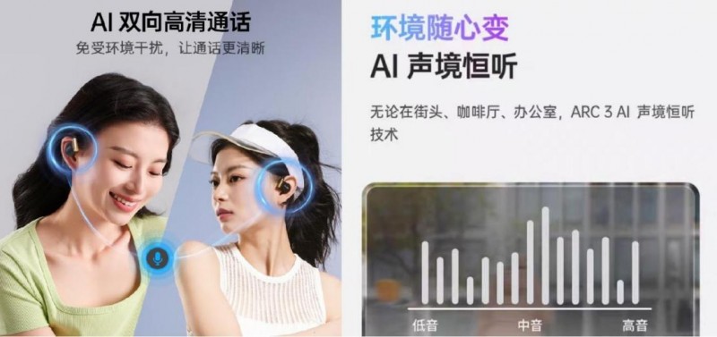 As the world's first open earphone to achieve active noise reduction, the Cleer ARC 3 Sound Arc Noise Reduction Edition relies on the powerful computing power of its new generation Greenwaves Gap 9 AI chip to quickly detect and analyze environmental noise in real time, dynamically adjust the noise reduction filter coefficient to achieve a noise reduction effect of -15dB, and realize intelligent functions such as AI noise reduction, AI bidirectional high-definition calling, and AI sound environment constant listening. In addition, the Cleer ARC 3 Sound Arc Denoising Edition can automatically recognize and separate your voice, filter out other voices around you and environmental background noise, ensuring that your voice is clearly transmitted during the call, allowing the other party to listen attentively to every word you say. Even online cloud New Year greetings can make your blessings more sincere and touching, perfectly conveying your feelings. Whether it's voice messages or video calls, the Cleer ARC 3 Sound Arc Denoising Edition can create a pure and interference free communication environment for you, allowing your blessings to enter your ears and your thoughts to reach your heart.