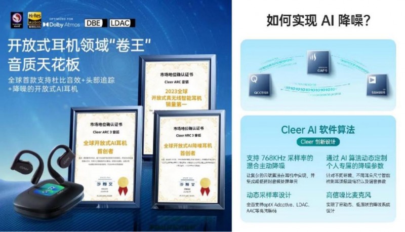 In addition, the Cleer ARC 3 sound arc is "new" in AI. Unlike traditional headphones, the Cleer ARC 3 Sound Arc is the world's first open AI headphone. This means that in addition to "master sound quality", it also has six surprising AI functions such as AI voice control, AI motion control, and AI sound environment constant listening.
