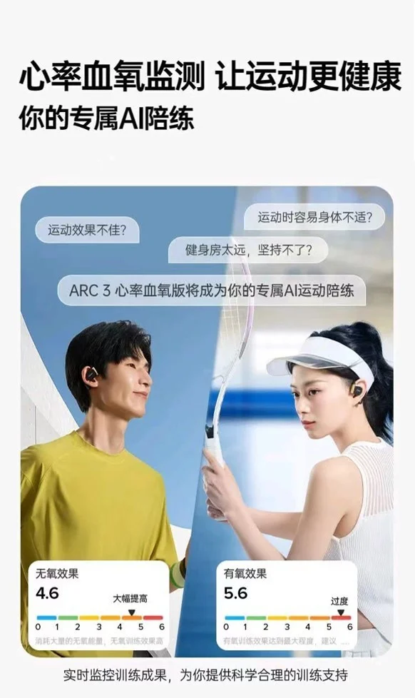 心率血氧監(jiān)測(cè)這一功能及相關(guān)服務(wù)的植入,除了賦予用戶對(duì)自身健康狀況實(shí)時(shí)掌控的能力外,還為用戶的運(yùn)動(dòng)提供了全面且精準(zhǔn)的數(shù)據(jù)支撐。搭載了GoMore算法的Cleer ARC 3 音弧 開放式AI耳機(jī) 運(yùn)動(dòng)版Pro,能夠通過(guò)算法幫助用戶分析每次訓(xùn)練的效果,并長(zhǎng)時(shí)間追蹤分析用戶的訓(xùn)練負(fù)荷及體能狀態(tài),提供恢復(fù)時(shí)間與訓(xùn)練建議,使得用戶能夠更加深入地了解自己的身體在運(yùn)動(dòng)過(guò)程中的反應(yīng)和變化,從而有針對(duì)性地調(diào)整運(yùn)動(dòng)計(jì)劃,進(jìn)一步提升運(yùn)動(dòng)效果。